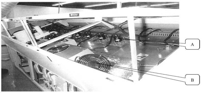 B :為回流焊FLUX 過濾制冷風扇,它將集中的FLUX 進行冷卻,有利于FLUX 的回收與處理。
