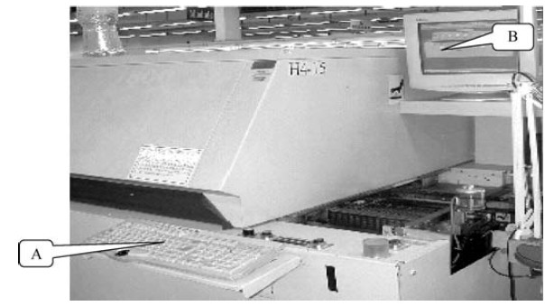 B :為回流焊的顯示屏,機器的參數(shù)設(shè)置及信息等都是通過顯示屏來顯示出來的。