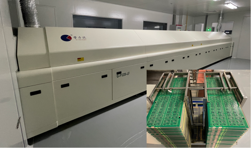 恩達(dá)集團(tuán)現(xiàn)場22溫區(qū)回流焊以及碳油固化產(chǎn)品